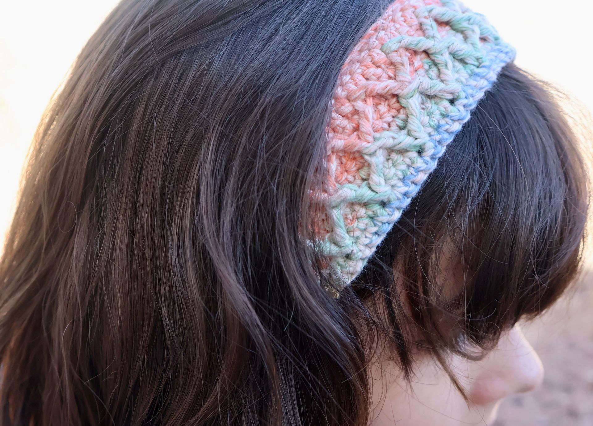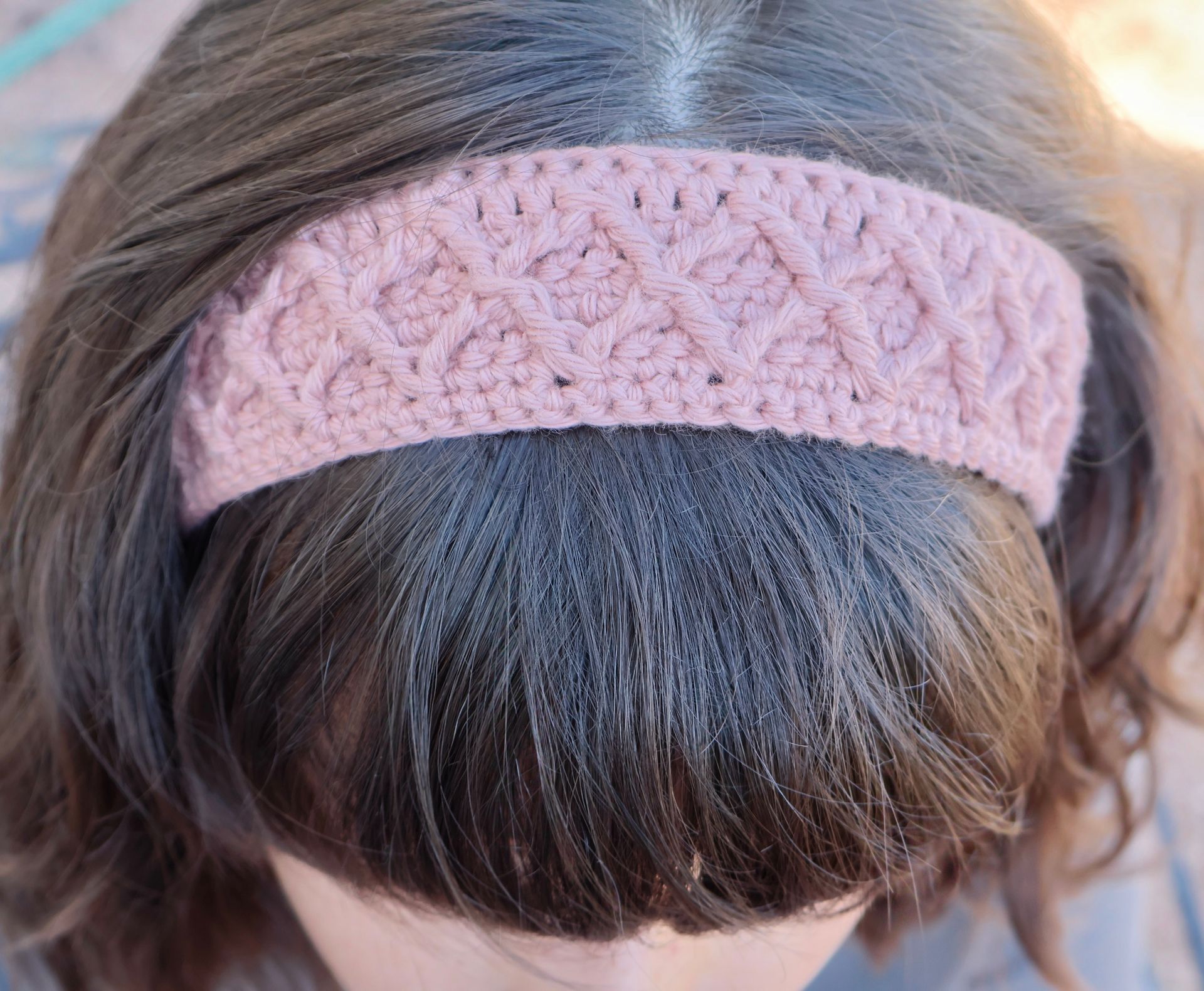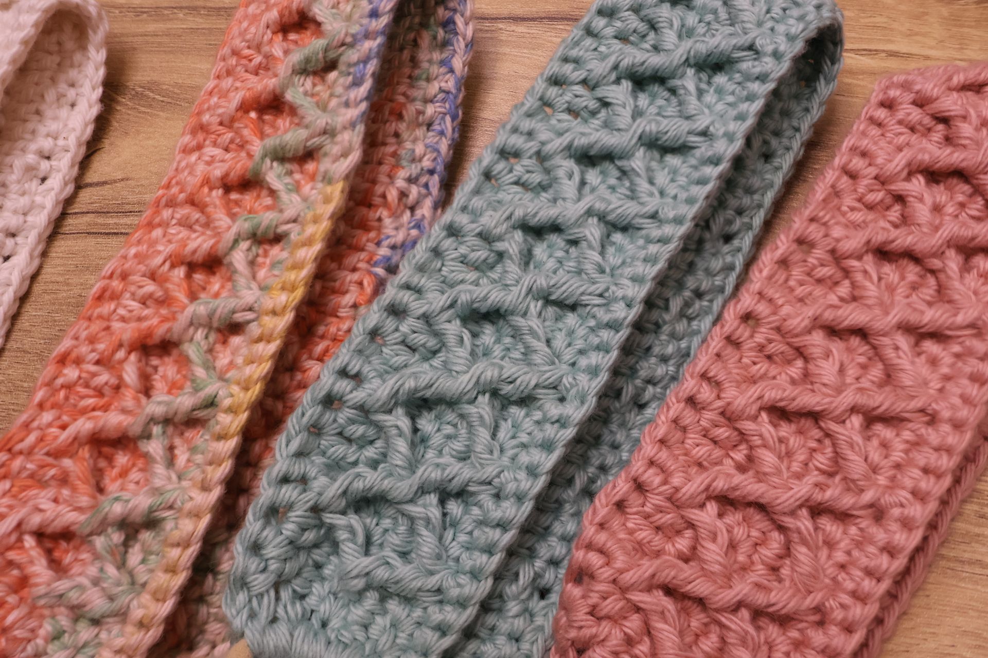 The headband features a beautifully textured stitch pattern using a split front post treble crochet that adds depth and dimension without being bulky. The subtle detailing gives them a handmade sophistication that can elevate a casual outfit or add a soft, bohemian touch to more dressed-up looks. Whether you prefer the gentle blush pink or the earthy green tones, there's a shade to suit every mood and wardrobe.